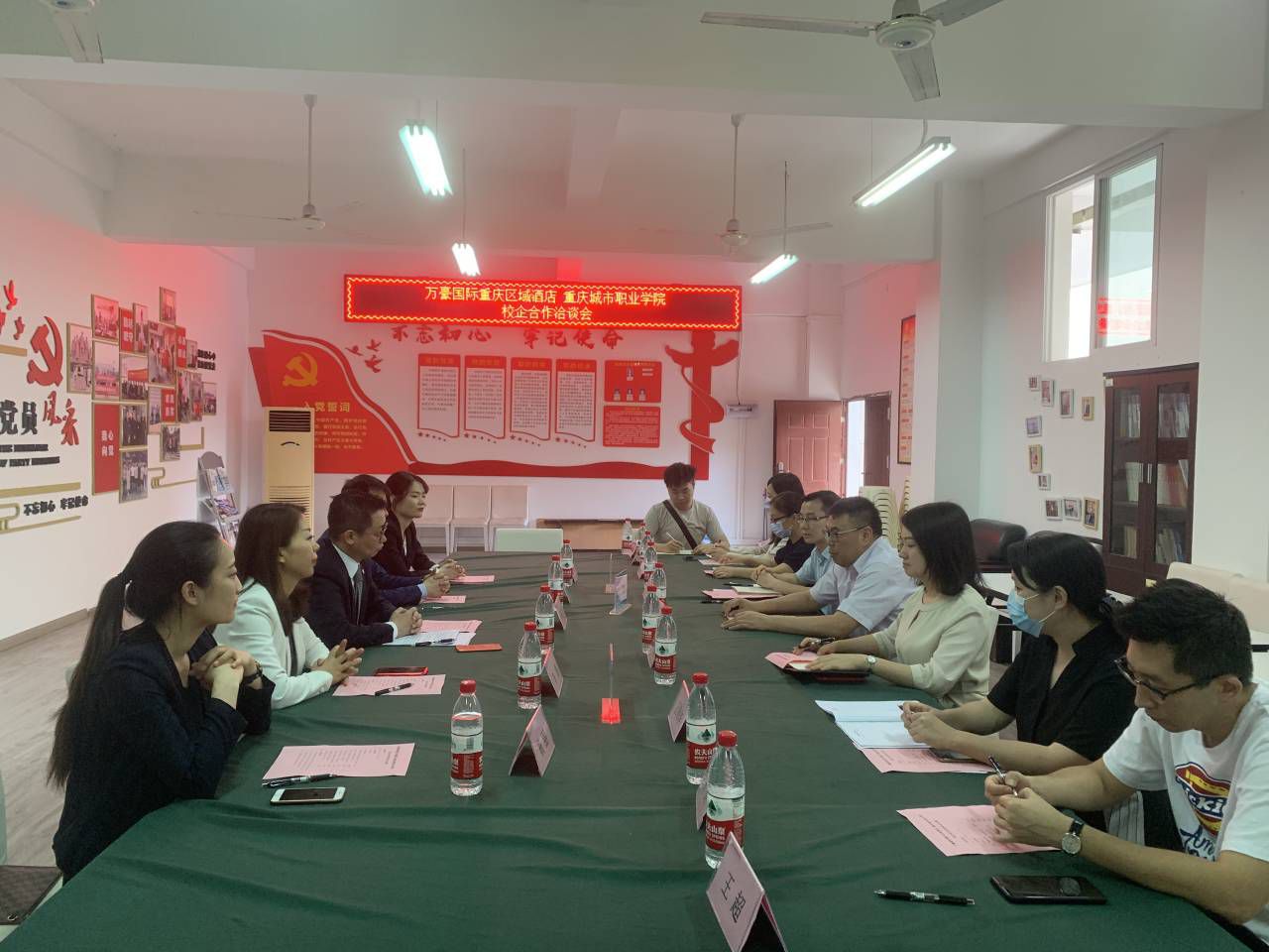 2020年6月19日下午,旅游管理系在光华楼208召开与万豪国际重庆区域酒店校企合作洽谈会,公司党委委员、副董事长刘仲全、重庆JW万豪酒店总经理杨海荣、重庆JW万豪酒店人力资源总监李娟、重庆艾美酒店人力资源总监何强、重庆喜来登酒店人力资源总监杨丽、重庆解放碑威斯汀酒店人事经理陈璐、旅游管理系党总支副书记杨翠、旅游管理系临时负责人幸亮、酒店团队教师参会。