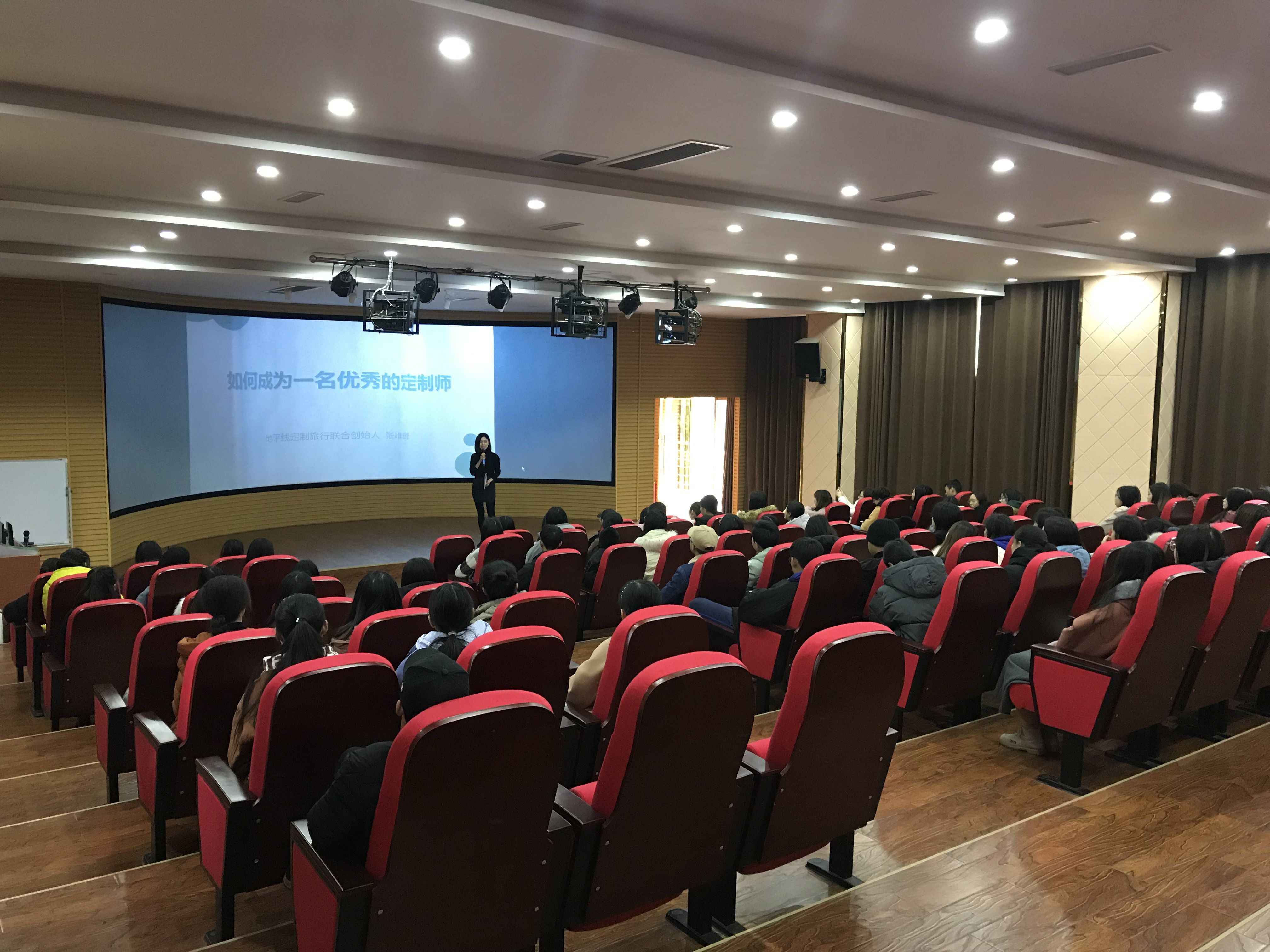 2019年1月10日下午,旅游管理系在3D实训室开展如何成为一名优秀的旅游定制师讲座,特邀地平线定制旅行联合创始人张唯璐进行演讲,旅游管理系系主任王琴、系党总支副书记邱睿、2017级、2018级旅游管理专业员工参加此次讲座。