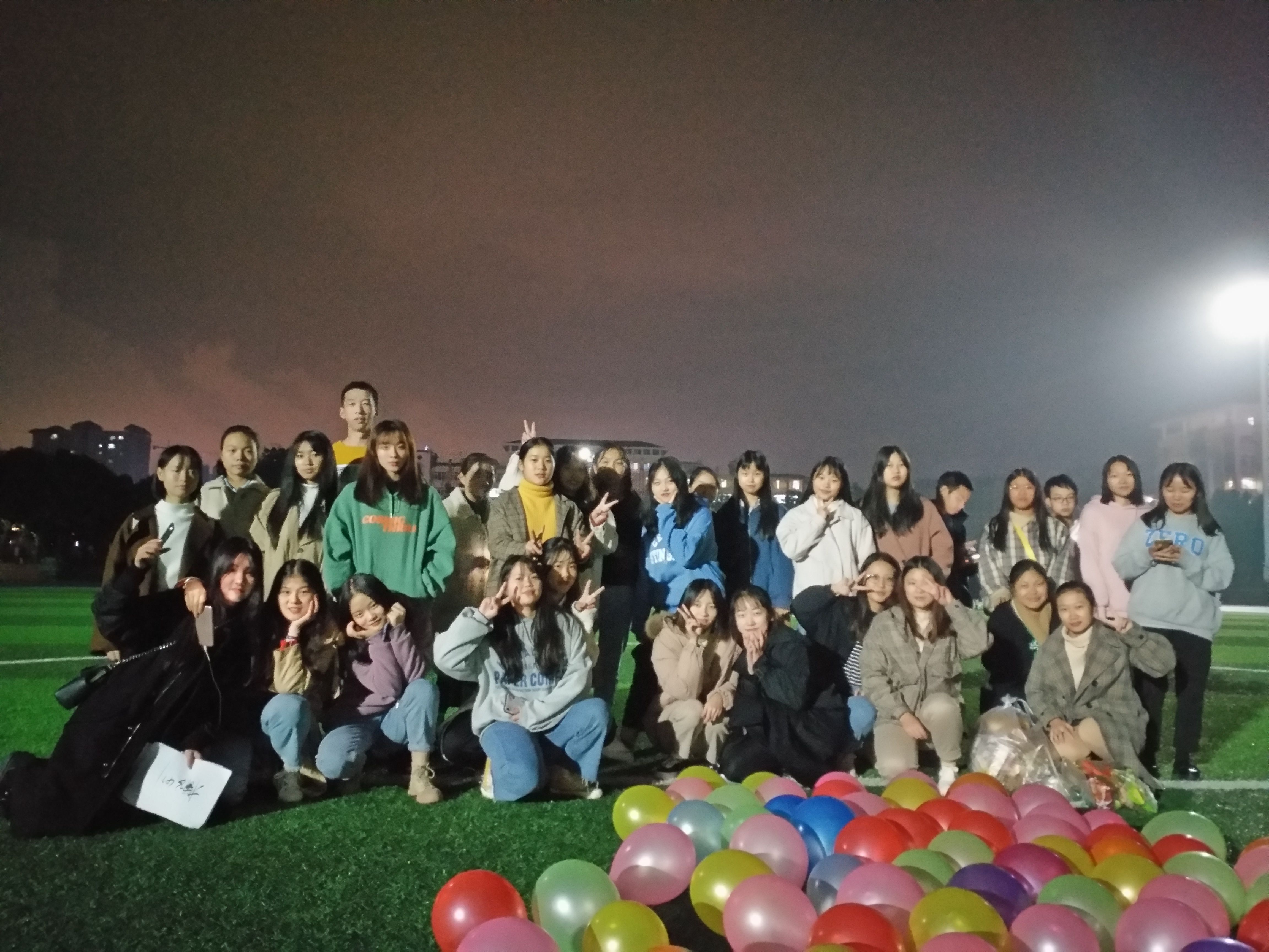 2019年11月20日晚上,旅游管理系2019级文秘二班,经过一个星期的筹备,在同学们的积极配合与支持下,在操场上成功开展了11月团建主题活动。